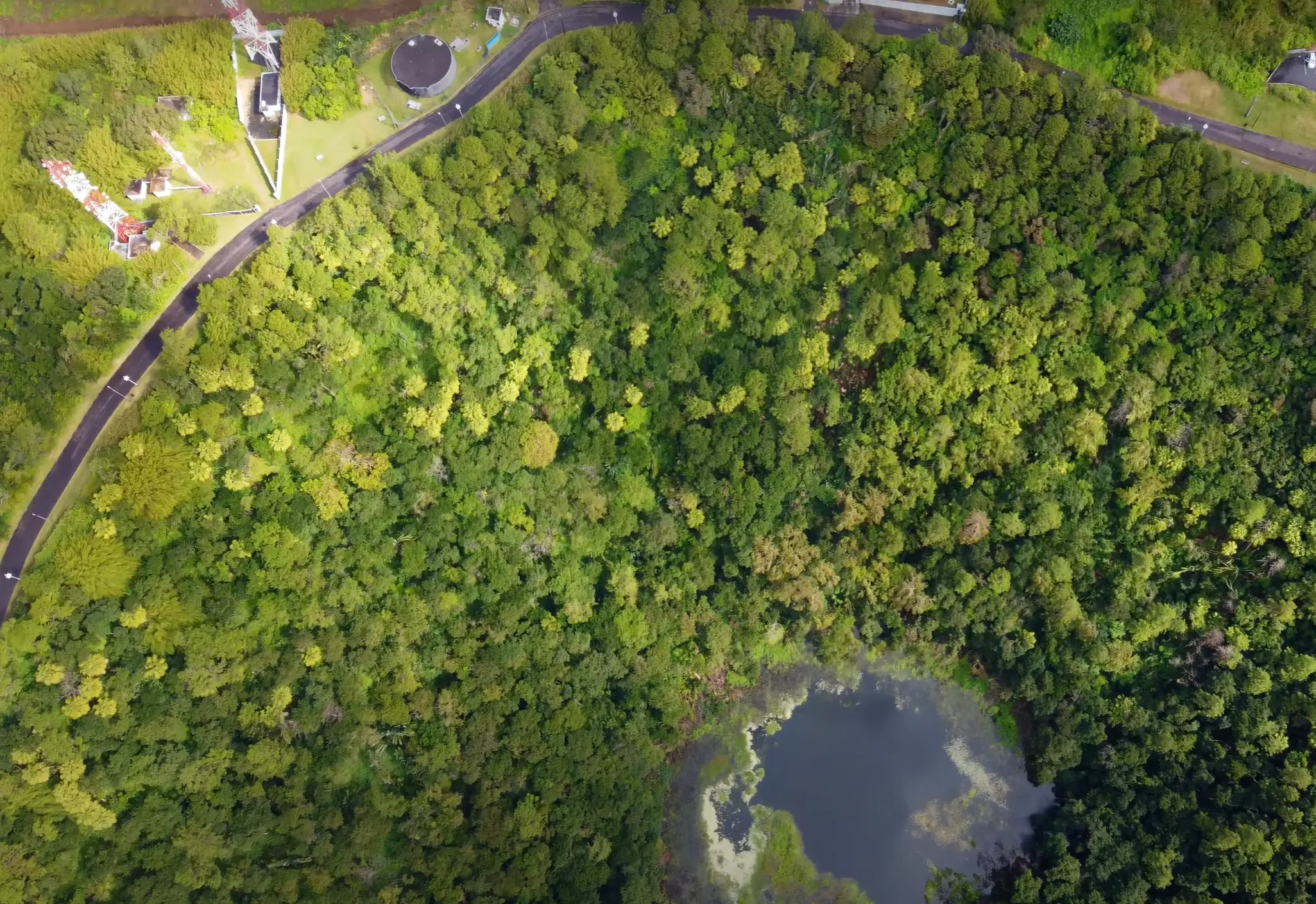 At the heart of the crater lies a small natural lake, surrounded by verdant vegetation. The forest around the crater is teeming with indigenous plants and pine trees, creating a serene atmosphere.